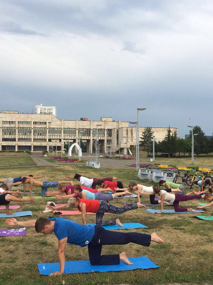 Их пригласил туда в воскресенье инструктор центра "Планета фитнес" Владимир Малясов. Его приглашение было заманчивым - при выполнении одного упражнения в технике пилатес работают одновременно несколько мышечных групп, что позволяет придать им больше упругости, силы, гибкости и эластичности. На приглашение откликнулись в основном молодые люди. Они укрепляли мышцы пресса, косые мышцы живота, а также работали над укреплением шейного, грудного и поясничного отделов спины. Спасибо Владимиру за его занятие!