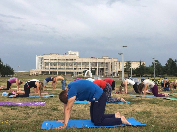 Челнинцы вышли на площадь Азатлык в 6.30 утра заниматься пилатесом