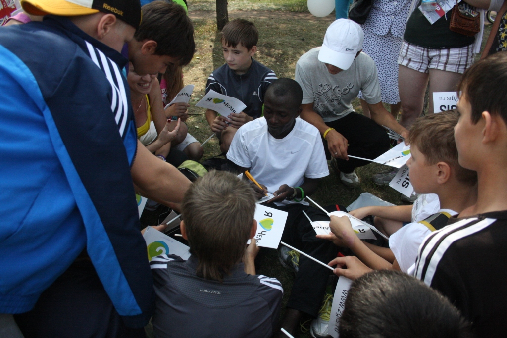 Кенийский бегун Эндрю Киманти Килонзи, победивший в челнинском марафоне, стал любимцем местной публики. Невысокого, скромного африканца после финиша атаковали толпы детей и девушек. Все хотели сфотографироваться со спортсменом, взять автограф и задать ему вопросы о Набережных Челнах, его настроении и самочувствии после забега. Эндрю расположился в тени под деревом и любезно общался со всеми. Он рассказал, что ему жарко в Набережных Челнах, но своим присутствием здесь он доволен, и что сейчас он намерен плотно отобедать, потому что перед стартом ничего не ел, подкрепился только 4 бананами, и ему нужно восстановить силы после 2 часов бега на солнцепеке. Спортсмен сфотографировался на память со всеми желающими, раздал десятки автографов, а один раз для подписи бегуну дали паспорт.