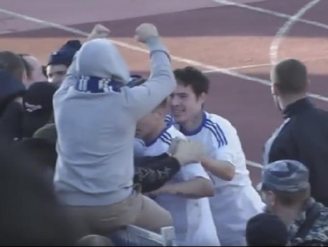 Камазовцы не отсиживались в обороне и пытались на контратаках реализовать свои редкие моменты. За две минуты до конца матча полузащитник "КАМАЗа" Никита Родионов, получив мяч на линии штрафной, пробил в угол ворот соперника - голкиперу хозяев не удалось дотянуться до мяча. 1:1. Празднуя гол, Никита попал в объятия челнинских фанатов, которые приехали в Ижевск поддержать наших футболистов (см.фото).