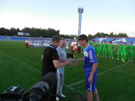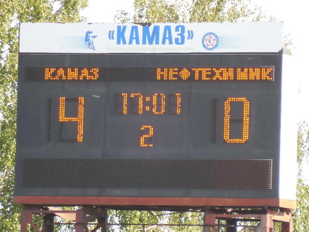 Затем на поле вышли участники финалов. Сначала третье место разыграли "КАМАЗ" и нижнекамский "Нефтехимик". Челнинцы довольно легко переиграли соперника со счетом 4:0 и стали бронзовыми призерами турнира. Голы забили Никита Родионов, Александр Бухаров, Денис Чушъялов и Николай Вдовиченко.