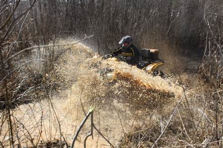Квадроциклисты на скорость преодолевали практически непроходимую трассу, заваленую бревнами и автомобильными шинами. Часть этапа пролегала через воду и грязь. Даже опытные экстремальщики, которых любовно прозвали «квадроманьяки», с трудом добирались до финиша, а новички то и дело плотно застревали в «грязевой ванне» по самый руль. «Квадрожертвы» выбирались из трясины при помощи «квадроманьяков». Конкурсанты не жалели ни себя, ни свой транспорт.
