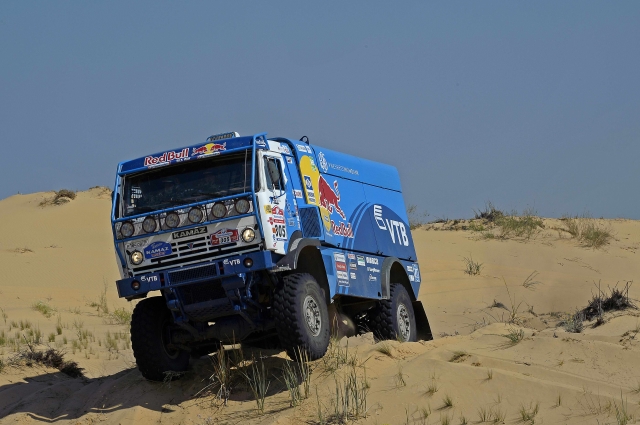На первом этапе у экипажа Андрея Каргинова были технические проблемы. Но на втором этапе, стартовав девятым, его "КАМАЗ" под номером 305 был на финише первым.
