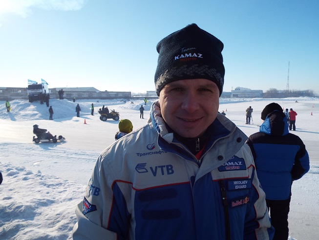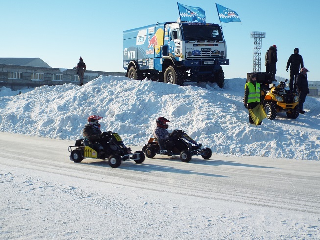 На ледяной трассе соревнуются молодые гонщики и пилоты команды КАМАЗ-мастер