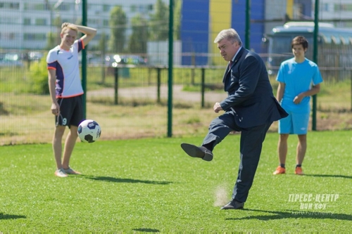 Сегодня за зданиями студенческого общежития КФУ рядом с манежем открылась новая универсальная спортплощадка, включающая в себя поля для мини-футбола с искусственной травой, универсальную площадку для волейбола и баскетбола, а также комплекса тренажеров для силовых упражнений. Кроме того, на имеющемся стадионе укладывают новый асфальт на беговых дорожках, а в скором времени здесь появятся трибуны на 250 мест. Строительство ведется в рамках республиканской программы под патронажем президента РТ, сообщает пресс-служба Набережночелнинского института КФУ. На открытии спортплощадки побывал глава города Наиль Магдеев, который пробил по футбольному мячу и попытался попасть в баскетбольное кольцо: