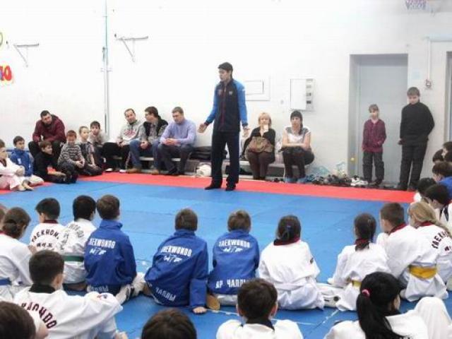 Сегодня в Детско-юношеский центр №14 приехал один из сильнейших тхэквондистов мира, бронзовый призер Олимпиады в Лондоне Алексей Денисенко. На мастер-класс от знаменитого спортсмена пришли несколько десятков юных бойцов со всего города. Показалось даже, что Алексей чуть смутился от такого внимания к себе. Денисенко рассказал ребятам о начале своего спортивного пути, вспомнив, что все начиналось с неприятных поражений: