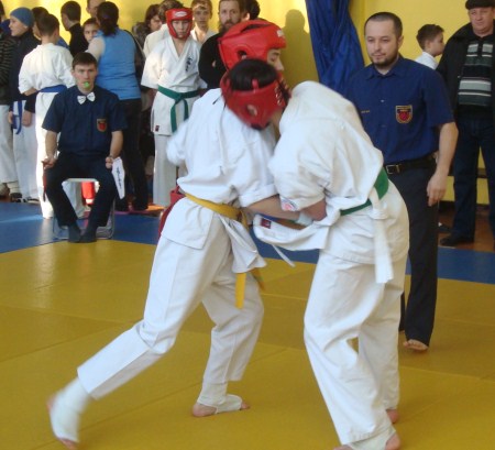 25 января в СДЮШОР №12 прошло первенство Республики Татарстан по киокусинкай среди юношей и девушек (от 12 до 15 лет). Зал челнинской спортшколы собрал молодых спортсменов из Казани, Набережных Челнов, Заинска, Альметьевска, Нижнекамска, Бугульмы, Лениногорска, Бавлов, Кукмора и Алькеевского района. В этот день на татами разразилась нешуточная борьба за медали и кубки. В турнире приняло участие 77 молодых каратистов. Спортсменов активно поддерживали их тренеры и родители. Помимо основных наград были вручены призы «За самый короткий бой» - Акмалетдинов Хаммат (Наб.Челны), «За лучшую технику» - Шубин Яков (Наб.Челны) и «За волю к победе» - Халилов Адель (Казань). В командном зачете в лидерах участники из города Заинск, на втором месте закрепились челнинцы, а третье место на пьедестале заняли спортсмены из Кукмора.