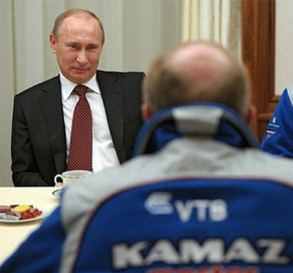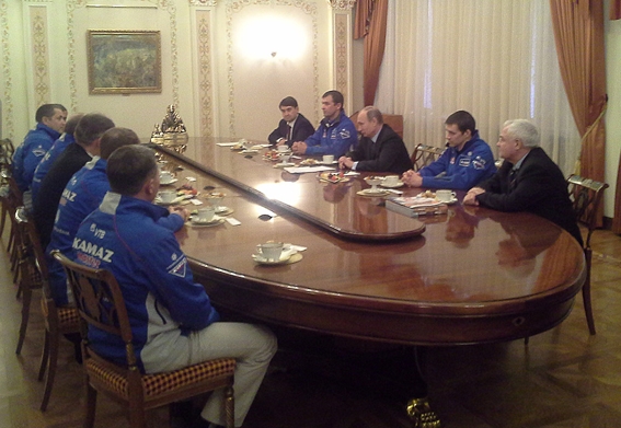 В резиденции президента РФ в Ново-Огарево состоялась встреча Владимира Путина с 12-кратными победителями ралли-рейда "Дакар" командой "КАМАЗ-мастер". На приеме также присутствовали президент республики Татарстан Рустам Минниханов и гендиректор ОАО "КАМАЗ" Сергей Когогин.