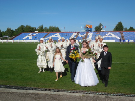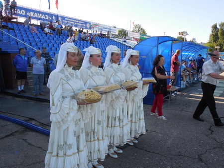 Сразу после этой игры состоялось официальное открытие турнира. На поле высыпали юные футболисты, затем закружился в танце ансамбль "Булгары". Далее по сценарию этот футбольный сабантуй увязали со свадьбой. На арену стадиона вышли Андрей Крылов и Елизавета Ильина. Изначально они хотели в день своей свадьбы просто после ЗАГСа заехать на стадион, чтобы сфотографироваться, но идея понравилась организаторам, и они включили молодоженов в торжественную церемонию открытия.